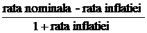 Daca nivelul inflatiei este de peste 100%, se foloseste formula lui FISHER pentru calculul ratei reale: