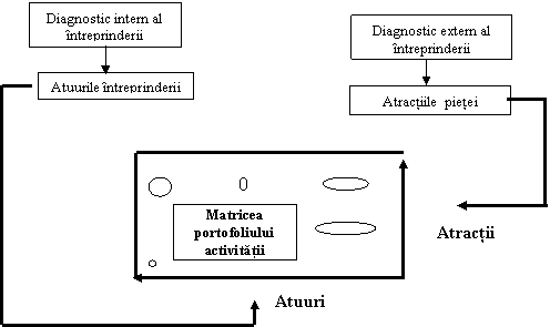 Modelele de analiza a portofoliului de activitati concepute de mari cabinete de consultanta (Boston Consulting Group, A. D. Little, McKinsey) au ca scop analiza ansamblului activitatilor unei intreprinderi, folosind in acest sens doua dimensiuni: o dimensiune sintetizeaza diagnosticul intern, adica avantajele intreprinderii, pe cand cealalta sintetizeaza rezultatele analizei externe, adica atractia pietei (figura nr.5.2 si tabelul nr.5.5).