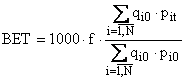 Data de referinta a indicelui BET este 19 septembrie 1997, iar data de start 22 septembrie 1997. Valoarea preturilor din fiecare zi este raportata la preturile corespunzatoare ale datei de referinta (momentul t0):