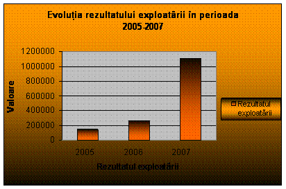 Dupa cum se poate observa rezultatul din exploatare a avut o evolutie ascendenta inregistrand o crestere de la 148.683RON in 2005 la 1.10886 RON in anul 2007, practic o majorare de aproximativ 7,42 ori. Aceasta crestere se datoreaza in principal cresterii calitatii serviciilor oferite si totodata datorita experirntei castigate de firma de-a lungul timpului.