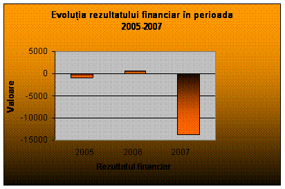 Daca in cazul rezultatului din exploatare acesta s-a concretizat in profit, in cazul rezultatului financiar s-a inregitrat o pierdere in anul 2005 respectiv 2007 si profit doar in anul 2006. Valoarea semnificativa o inregistreaza pierderea financiara din ultimul an care se ridica la suma de -1737 si aceasta datorita evolutiei negative a titlurilor financiare in care firma a investit.