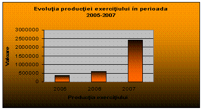 Graficul 2.2 Evolutia productiei exrcitiului in perioada 2005-2007