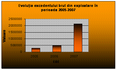 Graficul 2.4 Evolutia excedentului brut din exploatare in perioada 2005-2007