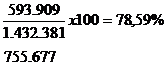 . Rata rentabilitatii economice brute (Rreb), in anul 2004 a inregistrat valoarea de 6,55%, in anul 2005 valoarea de 3,37%, iar in anul 2006 valoarea de 2,88%. Rezultat optim 25%. Valorile obtinute de societatea analizata sunt mult sub aceasta valoare, de aici reiese faptul ca doar un mic procent din EBE revine capitalului investit.