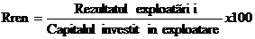 c) Rata rentabilitatii economice nete (Rren) - exprima cat profit brut din exploatare revine la o unitate de capital investit.