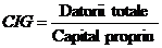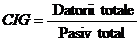 a) Coeficientul de indatorare globala (CIG) - este raportul dintre datoriile totale si total pasiv sau numai capitalurile proprii.