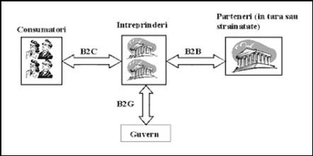 Alte relatii stabilite prin intermediul retelei Internet, adiacente comertului electronic, sunt: government to government (G2G), government to business (G2B), government to consumer (G2C), consumer to government (C2G), consumer to business (C2B) si consumer to consumer (C2C), fiind sintetizate in tabelul de mai jos: