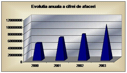 Analizind cifra de afaceri pe patru ani in urma se constata o crestere anuala de 35%, 16% , respective 38 % dupa cum urmeaza: