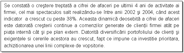 achizitionate noi utilaje care au contribuit la cresterea capacitatii de