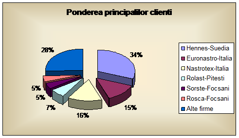 Din punct de vedere al localizarii clientelei putem afirma ca peste 57% din totalul productiei realizate este destinata exportului. La nivel judetean firma isi desface aproximativ 30% din volumul productiei, restul fiind absorbit de clientii localizati la nivelul judetului Brasov.
