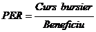 Reprezinta raportul dintre preturi (cursuri bursiere) valabile la data evaluarii si parametrii prezentati mai sus.
