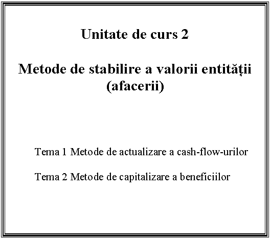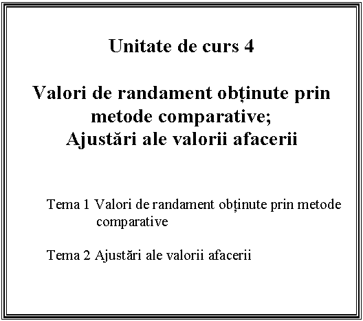 ESTIMAREA VALORII AFACERII PRIN METODE BAZATE PE RANDAMENT