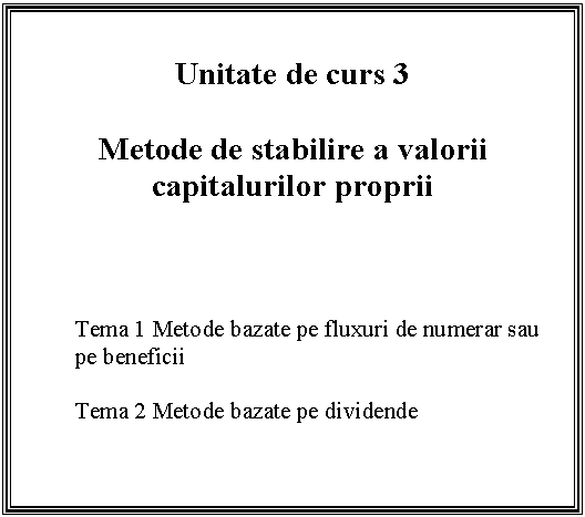 Rezumatul modulului 3: Estimarea valorii afacerii prin metode bazate pe randament