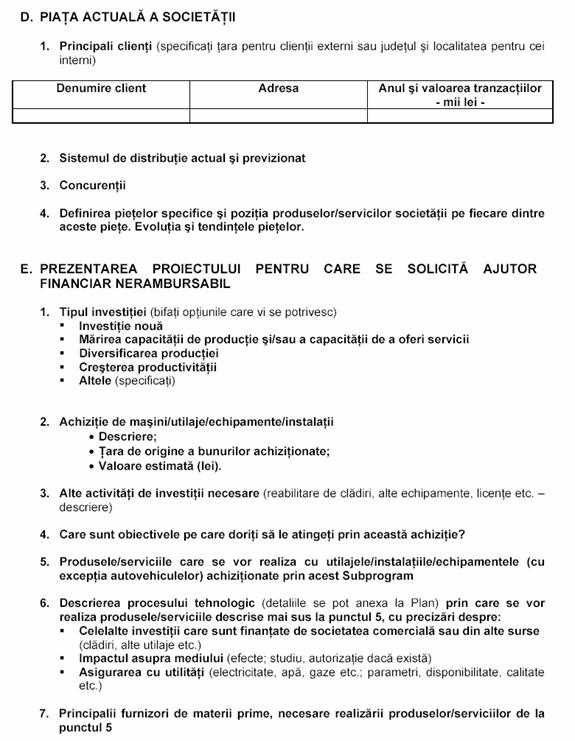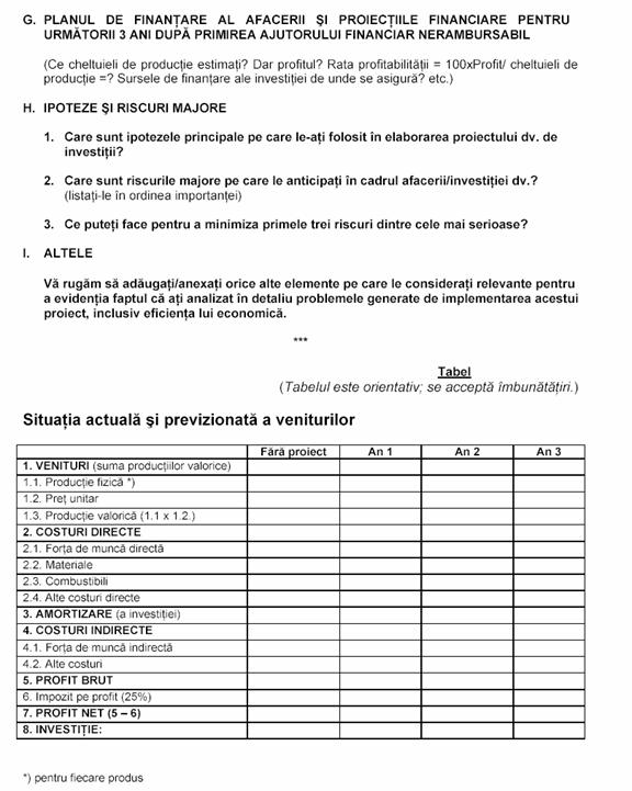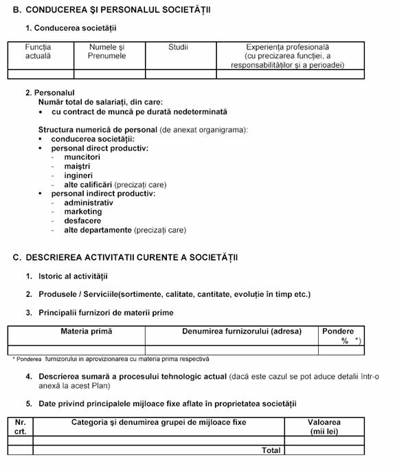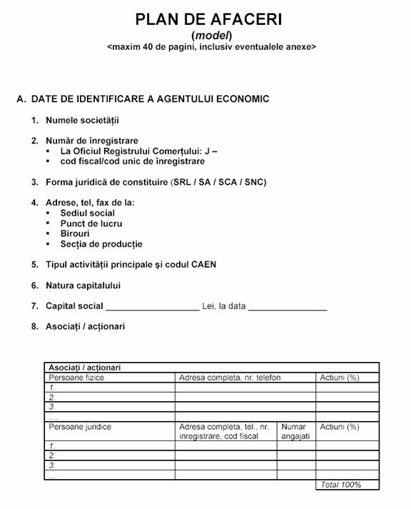 Structura planului de afaceri este una standardizata; fiecare firma trebuie sa realizeze un singur tip de plan de afaceri.