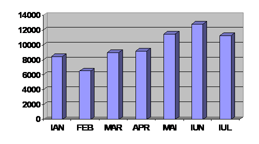 Singura grupa de cheltuieli care ar putea fi modificata, dar asupra careia nu s-a putut exercita un control direct pana acum, sunt cheltuielile cu serviciile gratuite acordate clientilor (montari gratuite pentru piese, lucrari ia piesele in garantie, etc.). Aceste cheltuieli afecteaza foarte mult profitul firmei, ele fiind acoperite din adaosul comercial obtinut. Evolutia cheltuielilor cu serviciile gratuite acordate clientilor pe prima jumatate a anului 2007 este redata in graficul urmator: