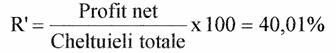 Adica la fiecare leu investit se va obtine un profit anual de 0,359 lei.