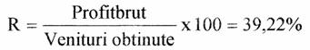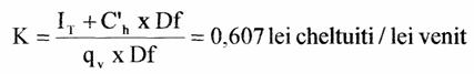Deci cheltuielile echivalate facute pentru a obtine un leu venit sunt de 0,607 lei.