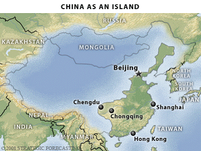 surround this heartland - Tibet, Xinjiang province (home of the Muslim Uighurs),