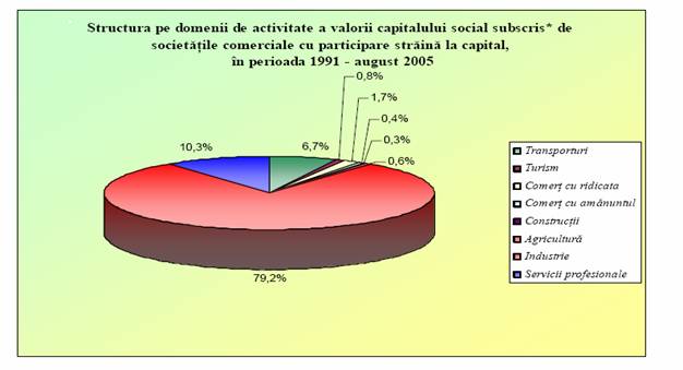 - servicii, 69 proiecte cu o valoare angajata de 811 milioane USD, reprezentand 12,26% din totalul investitiilor;