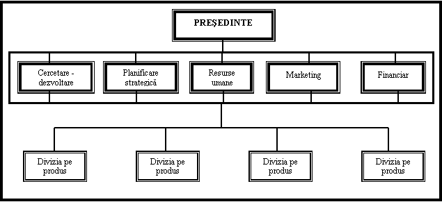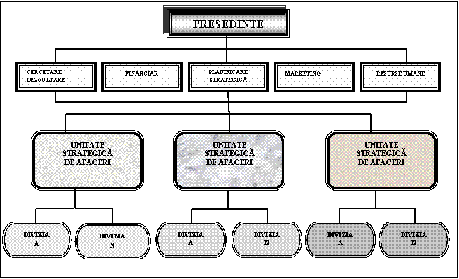 Implementarea acestei strategii presupune realizarea unei structuri organizatorice bazate pe unitatile strategice de afaceri sau centrele de afaceri si care arata ca in fig.5.4.
