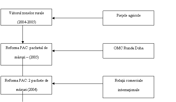 In ianuarie 2003, la propunerile Comisiei Europene, Consiliul Ministrilor Agriculturii a ajuns la un acord privind reformarea fundamentala a PAC, in mai multe etape, asa cum este prezentata in graficul nr. 1.