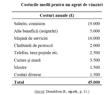 Bill Donaldson considera ca directorii de vanzari si de marketing ar trebui sa-si puna cat mai des intrebarile: "Ce s-ar intampla daca numarul personalului de vanzari ar fi injumatatit (sau dublat)? S-ar injumatati (sau dubla) si vanzarile si care ar fi efectul pe termen scurt si lung al acestei masuri asupra profitului?" Sunt foarte putine firmele care si-au sporit vanzarile si profitul pe termen lung prin reducerea personalului de vanzari. Costurile unui agent mediu de vanzari in Marea Britanie se ridica la aproximativ 45.000 ₤ dupa cum urmeaza: