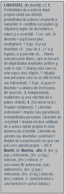 Din definitiile date libertatii, vom constata ca si ea este inteleasa intre doua limite: prima este aceea a "actiunii dupa propria vointa, dupa bunul plac" si cea de a doua este "actiunea in conditiile cunoasterii legilor de dezvoltare a naturii si a societatii". Diferenta este data de lipsa de cunoastere, caci, de fapt, ruperea in doua a definitiei complete duce la doua tipuri de comportament distincte, ambele nocive: prima, anarhismul, neaga ordinea si disciplina sociala in general; a doua, legalsmul, reprezinta un principiu potrivit caruia orice persoana fizica sau juridica este obligata sa respecte minutios legea. Exacerbarea legalismului duce la abuzul de drept, si acesta fiind un delict care consta in exercitarea unui drept cu nesocotirea scopului sau social-economic. Ordinea legala este cea care asigura viata si activitatea unui stat.