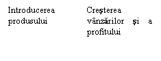 c. Pozitionarea produsului. Pozitionarea produsului reprezinta modul in care vad clientii produsul, in raport de cele ale concurentilor. Ea este determinata de caracteristicile acestuia. In general, un produs are urmatoarele stadii pe durata ciclului sau de viata: introducere, crestere, maturitate, declin. Ciclul de viata al produsului (fig. 1) reflecta aceste stadii de crestere, iar masuratorile permit conducerii sa ia decizia continuarii sau nu a vinderii produselor.