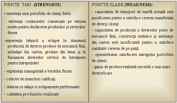 cresterea capacitatii de productie prin achizitionarea de echipamente performante (strung pentru mecanica fina, presa pentru cartoane, diverse scule si echipamente), a volumului de servicii de transport (de marfa si de persoane) si amenajari interioare prestate diversilor clienti
