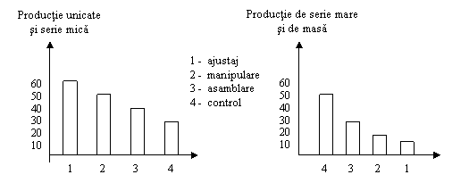 La utilajele complexe (masini de ridicat, masini unelte, utilaj chimic) montajul consuma 45-70% din manopera totala. Montarea unui motor cu ardere interna consuma 30% din volumul de munca al procesului de fabricatie. Chiar la produsele fabricate in serie, montajul reprezinta 20% din manopera totala.(fig. 13) /7/