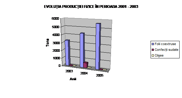 Astfel, in tabelul nr. 7 si graficul 1, se prezinta evolutia productiei in unitati fizice, pentru fiecare an si pentru cele 3 sortimente de produse, alcatuind obiectul activitatii de baza al SC LATINA PLASTICS SA, in perioada 2002 - 2003.