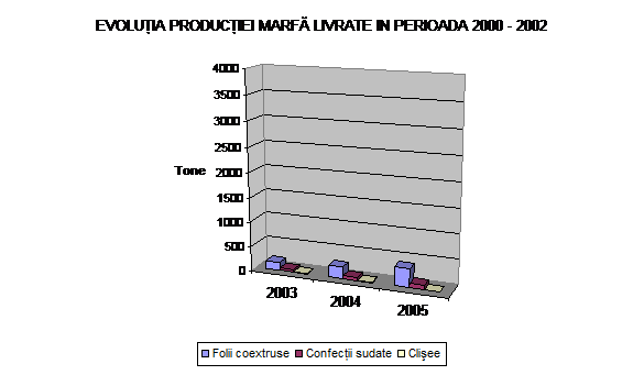Aceste concluzii sunt sustinute si de datele prezentate in tabelul 8, respectiv graficul 2, care redau evolutia productiei marfa livrata, in unitati fizice, pentru cele 3 sortimente principale ale societatii, in perioada analizata: