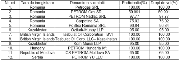 Tabelul nr.1: Filialele grupului Petrom, din tara si din strainatate