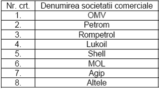 piata distributiei si comercializarii de produse petroliere (Petrom, OMV si Rompetrol).