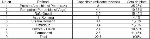 capacitati de rafinare in Romania. Prin urmare, o insumare