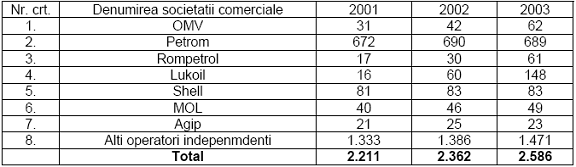 Detalii in legatura cu retelele de distributie (benzinarii) ale operatorilor de pe aceasta piata sunt prezentate mai jos: