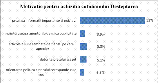 Ceea ce diferențiaza cotidianul Deșteptarea este tocmai poziția pe piața și atractivitatea pe care o are pentru diferitele categorii de public. La nivelul anului 2007, cota de piața a cotidianului era de 61,9%, mult peste principalii sai concurenți (figura 1.1.). Aceasta poziție concurențiala puternica se bazeaza pe faptul ca acest cotidian a reușit pe parcursul anilor sa raspunda așteptarilor consumatorilor de informație, raspunzand astfel mai bine la nevoile pieței decat contracandidații sai (figura 1.2.)