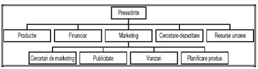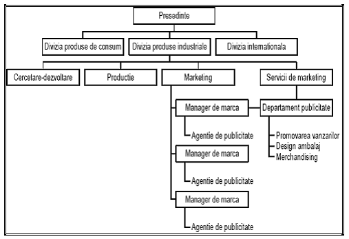 Dupa cum se poate observa din figura 2.2., departamentul de publicitate este inclus in sfera serviciilor de marketing, al caror rol este acela de a asista managerii in activitatile de planificare si coordonare a comunicatiilor de marketing. Un astfel de sistem de organizare aduce o serie de avantaje. In primul rand, acesta asigura o buna flexibilitate in ceea ce priveste raspunsul fata de problemele si oportunitatile ce pot aparea. In al doilea rand, acesta asigura o mai mare rapiditate in dezvoltarea campaniilor publicitare, ideile creative noi putand fi introduse si adoptate cu mai multa usurinta. Rezultatele in ceea ce priveste vanzarile generate de o campanie promotionala sunt mai facil de evaluat in situatia existentei acestor divizii independente.