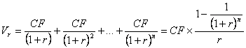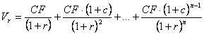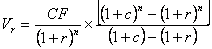 b) Crestere geometrica a cash-flow-ului (CF), intr-un ritm anual c, care conduce la o valoare de randament a afacerii (Vr)