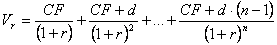 c) Crestere liniara a cash-flow-ului (CF), cu o valoare fixa d, care conduce la o valoare de randament a afacerii (Vr)