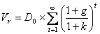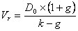 Comentariu: formula se bazeaza pe cresterea cash-flow-ului pe termen lung cu o rata constanta g, inferioara costului capitalurilor investite.In practica americana cash-flow-ul introdus in formula este de forma cash-flow-ului aferent operatiilor intrteprinderii ( free cash-flow).