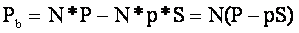 Tinand cont de caracteristicile definite anterior se poate deduce usor relatia de calcul a profitului brut (Pb) ca diferenta intre totalul sumelor incasate de societate (N*P) si totalul cheltuielilor efectuate ( N*p*S), astfel: