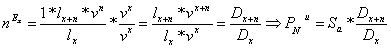 - lmx = numarul mediu al supravietuitorilor intre x si x+1 ani.