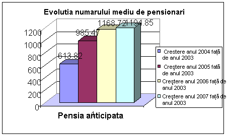 Analizand la nivelul judetului evolutia pensiilor pe tipurile prezentate la capitolul II situatia se prezinta astfel:Pensia anticipata a avut o crestere pozitiva de la an la an in perioada studiata 2004-2007.