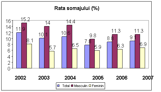 Rata somajului la sfarsitul anului 2007 era de 9,1%, calculata in raport cu populatia activa civila, situatia fiind urmatoarea: