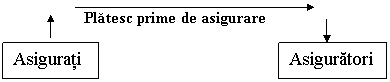 Observam legatura dintre asigurati care platesc prime de asigurare societatilor de asigurari, iar acestea platesc indemnizatiile de asigurare.
