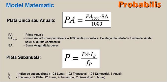 Calculul primei de risc. La inceputul fiecarei luni se calculeaza prima de risc pentru acea luna. Prima de risc depinde de varsta asiguratului, de valoarea patrimoniului pe polita la ziua 1 in luna si a sumei de asigurare convenite pentru cazul de deces.