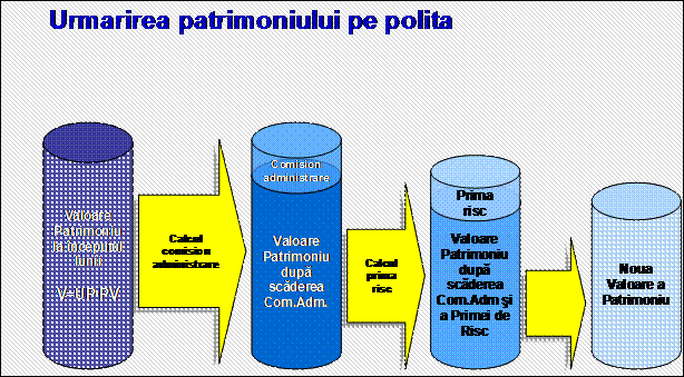 Deducerea primei de risc. Prima de risc se scade din valoarea patrimoniului, astfel incat asiguratorul scade numarul corespunzator de unitati de patrimoniu din contul de depunere al politei in cota proportionala referitor la valoarea patrimoniului pe polita la fiecare fond.