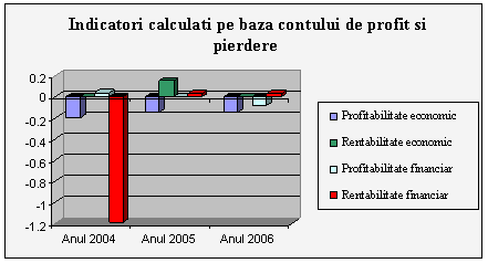 In primul an, firma nu inregistreaza profit ci o piedere de 717618 mii lei si astfel nu am mai calculat indicatorii de profitabilitate. Aceasta pierdere este pusa pe seama cresterii stocurilor si scaderii creantelor si disponibilitatilor banesti din anul analizat 2004. In ceilalti ani, ratele de rentabilitate in raport cu capitalul angajat si capitalul propriu au inregistrat valorii negative, avand consecinte nefavorabile asupra masei profitului si asupra indicatorilor.