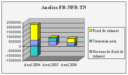 In urma analizei efectuate constatam ca, fondul de rulment se diminueaza de la un an la altul de la 510749 in 2004, la 392014 in 2005 respectiv, 271246 in anul 2006; toate acestea in conditiile in care resursele scad iar utilizarile stabile incep sa creasca. Acestea au ca efect reducerea marjei de siguranta a firmei care poate fi insa consecinta finantarii unor investitii rentabile.